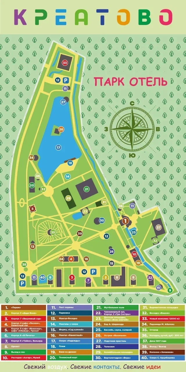В летний сезон отдыхающих привлекает озеро, на песчаном пляже которого устанавливают лежаки и зонтики. Все общелагерные спортивные мероприятия и квесты мы будем проводить на оборудованных спортивных площадках на охраняемой огороженной территории парк-отеля. А так же посещать крытый бассейн.